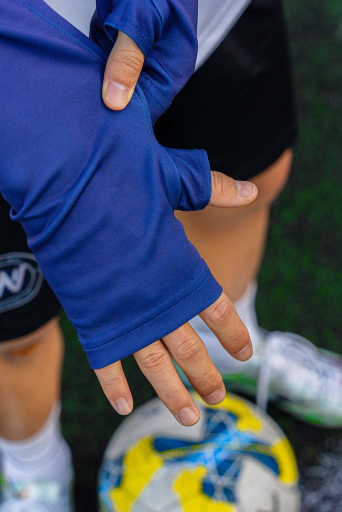 핑거홀 저지는 손목부터 손등까지 부드럽게 감싸는 슬리브 패턴과 새끼손가락을 고정해주는 핑거홀 디테일을 적용하여 격한 움직임 속에서도 소매가 말려 올라가지 않도록 안정적인 착용감을 제공합니다.