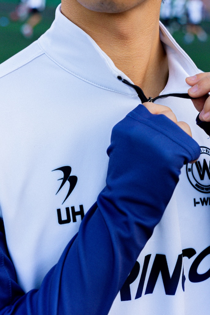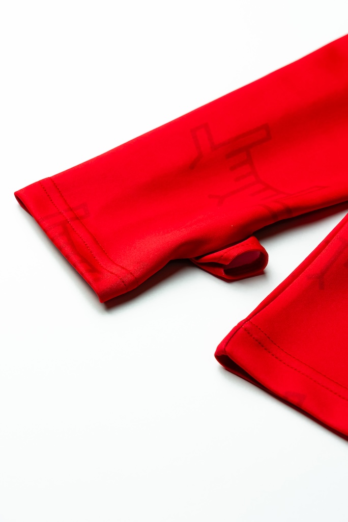 하이넥 디자인은 목을 단단하게 감싸 격한 움직임 속에서도 흐트러지지 않는 안정감을 주며, 핑거홀 디테일은 추운 계절에 손목을 따뜻하게 보호하고 팔 전체의 움직임을 더 균형 있게 받쳐주어 높은 일체감을 선사합니다.